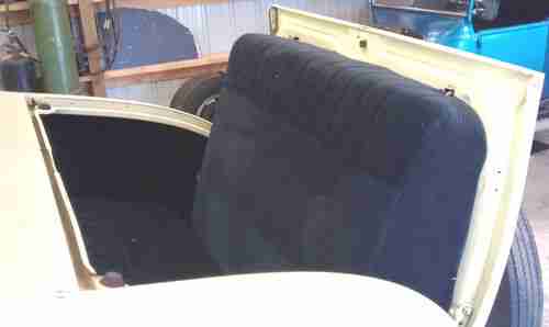 There is no rust or dents or dings in the body, but the paint is chiping in a few places. The brakes have been changed to hydralic, and the headlights are now upgraded to seal beam. The seats are in very nice shape, but not the original material. This would be an easy retoration project or a very good body for a street rod (All original steel body and fenders).