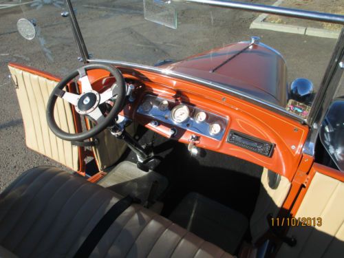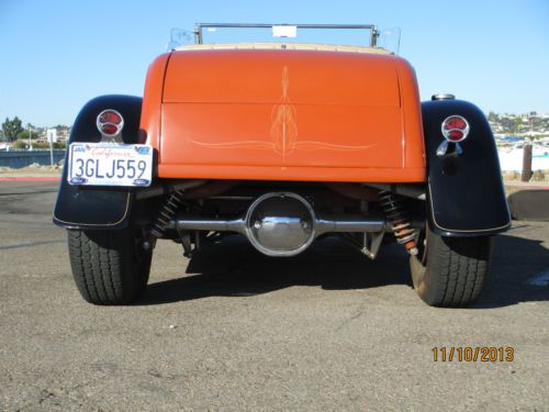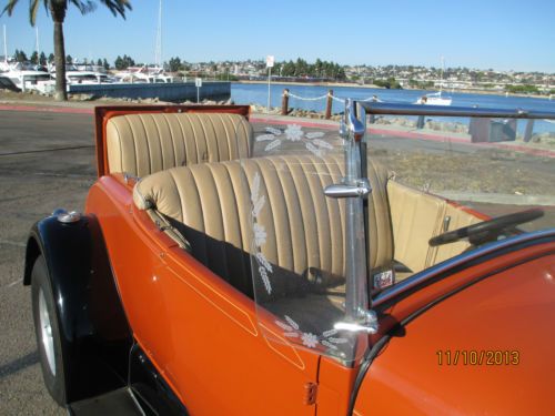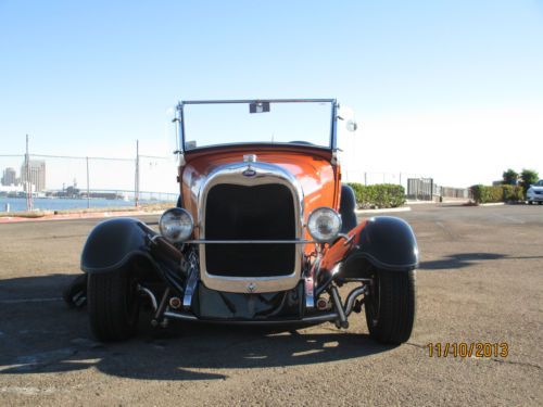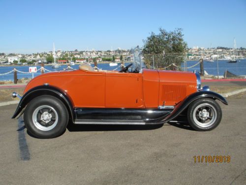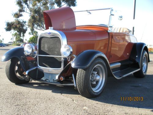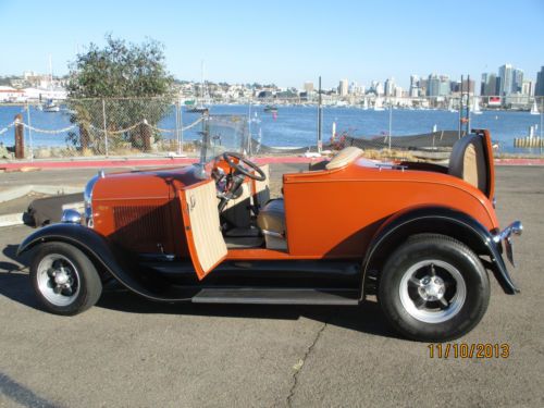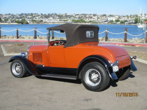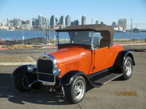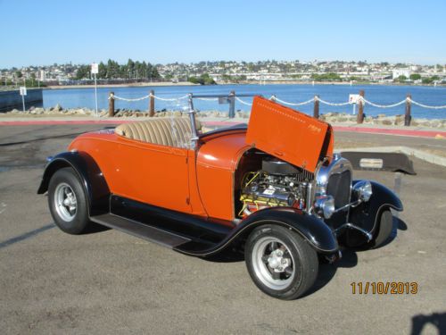 29 roadster model A glass body,built 30 years ago,rebuilt 283,t 350,ford 9',front disc brakes,updated new wiring,70 mph @ 2,500 rpm,am/fm/cd, ex show car west coast in the 80,s.top can be folded down or easly removed. drive anywhere.call at 619-469-3136.