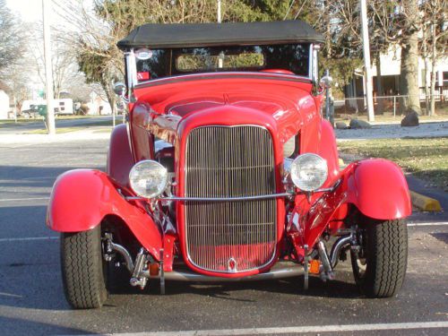 1929 Ford Roadster BODY This is an extremely well thought-out, well constructed build. The Z24 350 Chevy V-8 with Jet coated Headers sends the power to the Ford 8" Currie rear via a 700-R4 automatic transmission. The 4 bar polished stainless front suspension is by Pete & Jake. The brakes are disc at all four corners, Radial tires are mounted on 15" front and rear polished American rims. The steering is Vega type with a Corvette steering column. Sitting on a 1929-32 Ford reproduction boxed chassis by Total Performance is a Wescott 1929 Ford Roadster body, finished in multiple coats of smooth deep Red basecoat/clearcoat paint. The fit and finish is up to above driver quality standards. The fabric top can be used up , folded down or easily removed with 4 bolts. INTERIOR Soft Tuck and Roll red and white leather, fitted carpet w / matching floor mats says to you to get in and enjoy the ride. The classic gauges all add to the overall ambiance. Notice the shifter, brake and gas pedal quality and location. The trunk opens up to reveal a fully finished look with a rumble seat that compliments the interior. This can be changed to a regular trunk. I have the painted frenched louvered hood sides but like with just the top on! The optima battery is hidden in a tray underneath the seat along with the fuse connections. DRIVING IMPRESSIONS Simply put, this roadster drives as good as it looks - not a small accomplishment in a Hot Rod. It is smooth, not choppy. It travels straight down the road, the transmission shifts perfectly. It has a very solid feel, no doubt a result of a first class build . The fitted carpet and matching floor mats are installed over layers of heat and sound deadening material so that there is no excess heat in the cockpit and no excess sound. The only sounds you hear are the throatiness of the exhaust system and the growl of those rear tires. There are no drivability issues! THE LOOK It's not easy for a Hot Rod builder to attain "the look" but this Roadster has it in spades. You gotta love this Hot Rod, it looks and sounds fast and mean standing still! And, oh yeah, everyone loves this car - lots of thumbs up and waves - smiles all around. But this car is not for the bashful type, not for someone who wants to fly under the radar. You will get noticed. OVERALL This custom built roadster, is only 5300 miles from new, and was built to drive, It is in very nice shape. It started life in 2011 . I am stating that it is a # 3 quality but it is much better. Simply put if you see this Roadster in person, you'll buy it. Check the component prices of this high caliber build and you'll realize the value - This car is proof that it makes economic sense to buy them finished. A sample of some of the items used in the build!