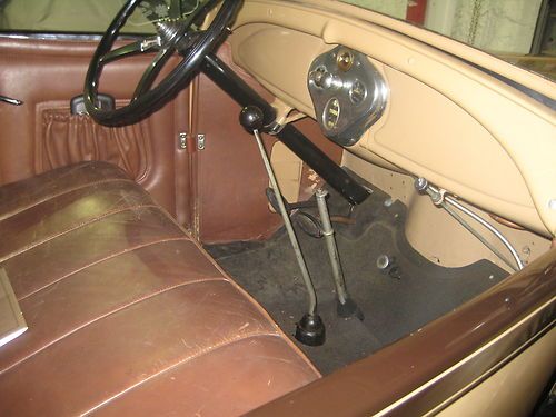 SOME OF THE DETAILS INCLUDE LEATHER INTERIOR, A PERIOD CORRECT CANVAS TRUNK, A CANVAS TOP PIPED IN BROWN THAT MATCHES THE REAL LEATHER INTERIOR AND RUMBLE SEAT, DUAL SIDEMOUNT COVERS, WHITEWALL TIRES, GRILL GUARD, FLYING QUAIL HOOD ORNAMENT, ALL WITH EXTREME ATTENTION TO DETAIL.