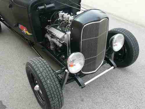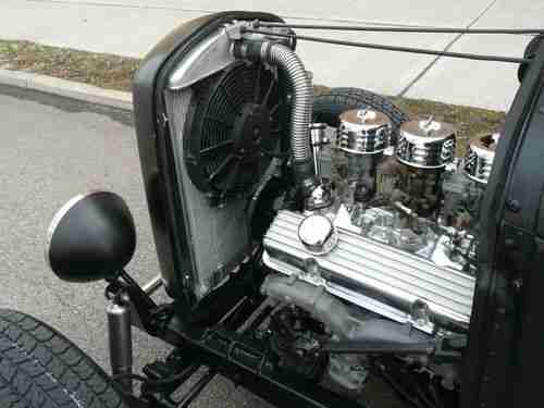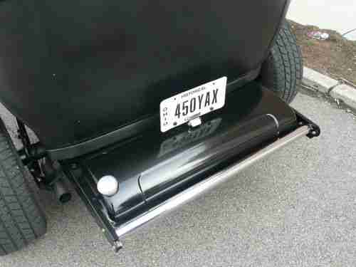 The car has a very nice and presentable driver quality satin black paint job, the top has a mild chop, there is no rust on this car anywhere, new OEM top, new aluminum windshield frame that opens and closes, all windows work as they should with new window channel, all garnish moldings are in place, new spreader bar on the front, new 10 inch commercial head lights with built in turn signals, and new 1932 grill insert.