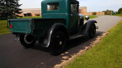 You are bidding on a Nice driver quality Model A pickup truck was restored in 1976. This A runs drives stops nicely the lights work. The truck is all steel including the fenders which have some dings and dents in them nothing major but I would like to mention. The truck is missing its shocks. Its the kind of truck you can drive and enjoy without worry about scratches. The seat is not correct however the skinny backrest gives 6 foot tall people much more comfort. This truck is still 6 volt . Radiator is new truck never over heats. If you have 0 feedback please contact me before bidding.