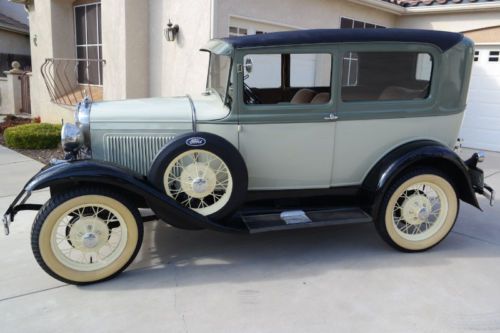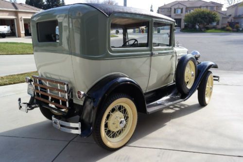 1930 Model A Ford Tudor Sedan Very clean car, runs great! It has been restored and is all factory. Color two-tone green exterior, yellow wheels, interior