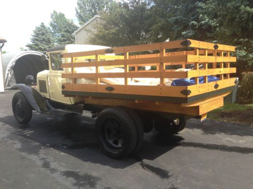 1930 MODEL AA FORD STAKE BED 2 1/2 TON DUAL REAR WHEEL TRUCK. HAVE OWNED FOR OVER 25 YEARS. GET IN AND DRIVE, NEW TIRES, BRAKES, RADIATOR. OLDER RESTORATION BUT A GREAT TRUCK WITH MINOR MARKS AS EXPECTED. THE BED IS ALL NEWER OAK BED AND REMOVABLE SIDES WITH ORIGINAL HARDWARE. INTERIOR WAS REPLACED AT RESTORATION. SOME EXTRA PARTS COME WITH TRUCK.SELLING TO RETIRE AND TRAVEL, IF INTERESTED IN SEEING TRUCK JUST LET ME KNOW AND WE CAN SET IT UP. TRUCK ALWAYS STORED INSIDE. IF YOU NEED ADDITIONAL INFO CALL MARK AT 716-282-5612 OR SEND ME AN EMAIL. THANKS AND GOOD LUCK