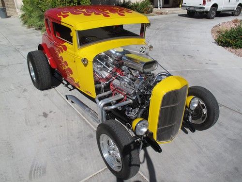 1931 original steel bodied ford hot rod. Recently finished. 350 chevy crate motor. Auto trans. Power windows. Nice paint, pinstriping done by Paul Hatton. Good interior. Finished out needs nothing. Located in Las Vegas. No warranty. Buyer arranges shipping. Call with any questions prior to purchase. 702 376-8721