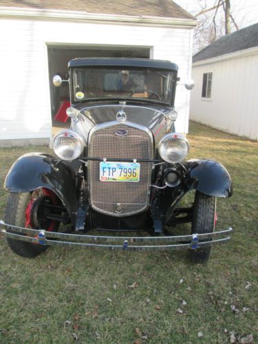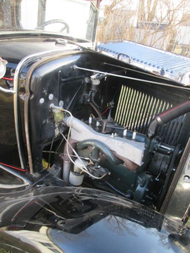 What you are viewing is a 1931 Ford Model A Deluxe. The vehicle has 33,873 miles. The engine is a 4 cylinder. The transmission is a manual transmission. The exterior color is black with red and white trim. The rims are red. The interior color is black with leather seats. The vin number is 3523181. This vehicle runs great and looks great. If you have any other questions please call me at 937-339-6628. PLEASE NOTE THAT THE BUYER IS RESPONSIBLE FOR PICK UP OF VEHICLE OR SHIPPING OF VEHICLE! |