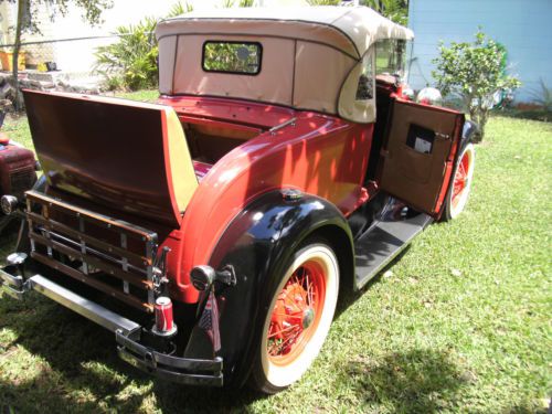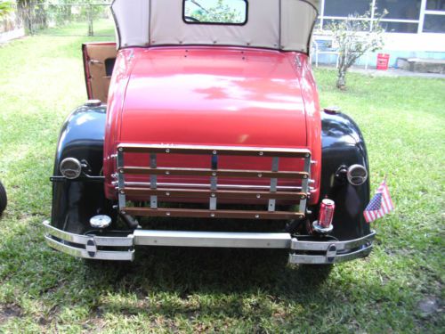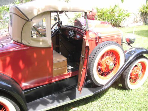 1931 MODEL A ROADSTER DELUXE - RUMBLE SEAT - 6 WHEEL - RED WITH TAN INTERIOR - 4 CYLINDER- 3 SPEED MANUAL TRANSMISSION - 43,000 MILES TOTALLY RESTORED BY THE OWNER WHO HAS BEEN A MECHANIC FOR OVER 50 YEARS RUNS AND DRIVES REAL GOOD & HAS A LOT OF GOOD MILES LEFT ON HER & THE LAST YEAR FORD MADE MODEL A's PLEASE READ BELOW BEFORE YOU BID !!!