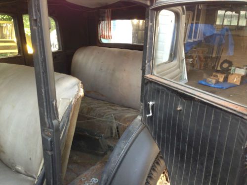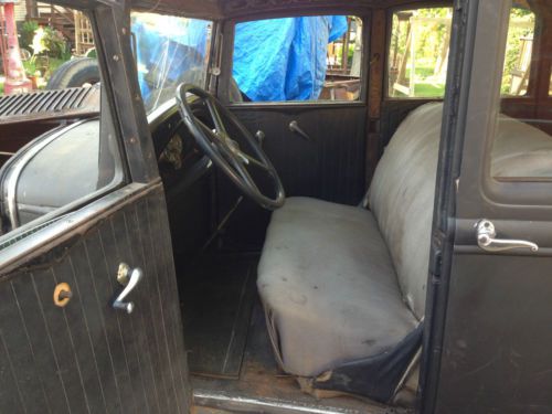 This is a 1931 Model A Ford Slant Window Sedan. It is in very good original shape. It has not been restored, just kept dry in a barn for 45 years. House is sold and the Model A does not have a place to go. It is all the original steel. Restore it or fix it up a little and drive like it is. It was last driven about 20 years ago. Engine has good compression and turns right over. Oil has always been kept in the cylinders. Started to convert to 40 Ford hydraulic brakes but not finished. Put back to original or complete the conversion. It is hard to find the slant window models, they make great chopped top sedans as the body structure is all steel inside. The wood is only there to tack the headliner and trim in place. This car is very solid, with a little of rust showing at the cowl. It has remnants of an old tuck and roll interior. Seat springs seem fine. The wood is all good inside. It has the 16 inch 35 ford Wire wheels all the way around. Some of the glass is cracked but it is all there. It it time to put this car back on the road!