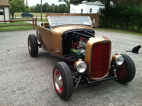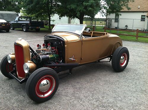 selling my 31 roadster started a new one don't need 2. i finished this car in late july this car is fresh and runs great i have taken the car on a couple of 150 mile round trips. i only entered this car in 3 local car shows it placed 3rd in one of them and best in show in the other. steel 32 grill shell all steel 31 body new brookville doors and floor z 3 in in rear rebuilt chevy 283 done up as an olds rebuilt turbo 350 3 94 carbs all the same model number on offy intake mallory electronic distributor magnum front axle s10 rear axle with posi all rebuilt new bearings and seals pete and jakes hair pins and ladder bars front brakes 56 ford all new parts and bearings with buick covers s10 rear brakes everything new from backing plats to drums so cal gauges and parr engine turned dash panel locar shifter and parking brakes power gens alternateur 50 pontiac led tail lights lake headers with baffles 147 louvers firestone bias ply on all 4 corners vintque powder coated wheels ford v8 hubcaps and trim rings pin-up girls painted on both side of the cowl the car everything has new everything or rebuilt finished in late july and has just over buyer is responsible for shipping and this car is for sale locally so i reserve the right to end the auction if it sells 500 dollar deposit do at end of auction. the car will not leave until it has been paid for in full. payment can be cash or bank wire transfer but prefer cash if you have any questions please contact me before bidding |