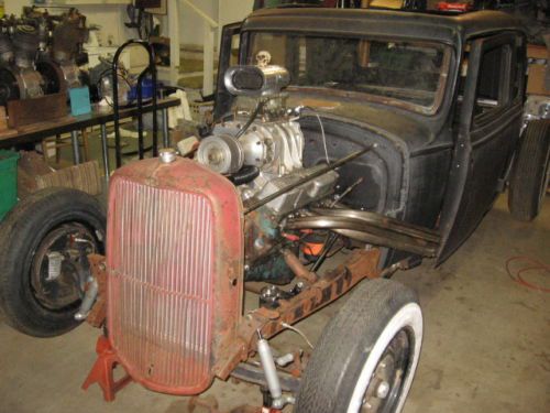 here is a unknown 1932 5 windows coupe with suicide doors hot rod/rat rod, vintage cagier 371 blower on small block Chevy with ronco vertex magneto, turbo 400 trans, 9" rear-end with posi, car is very close to being a driver, i have almost all you need to make it a driver, all new vintage Dolphin gages easy wiring harness,, all lights new 49 to 50 Pontiac round tail lights , seat belts, new mini HEI disturber, car can be driven on an off trailer the way it is yes it runs and drives an stops as you see it now, this is not chopped the car is 56" tall has custom Zed frame with air bag in back not yet plumed but have all plumbing and valves an tank an compressor, all steal body, no rust, new floor sheet metal, Pantara adjustable bucket seats, I have the deck lid, I am almost 7' tall and I have plenty of room in the car, car is titled as a 1930 model A ford and is clean an clear in my name, sold as is what you see you get, reserve the right to end sale early as listed locally