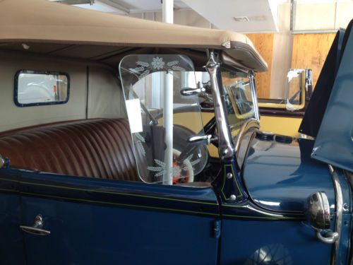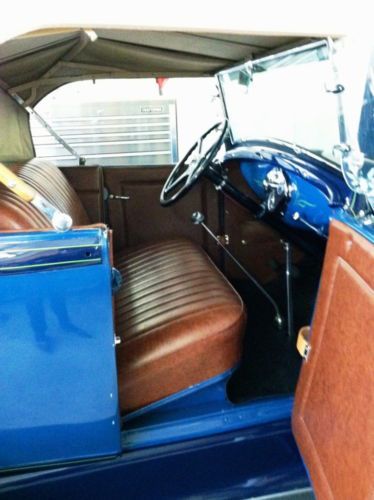 FULLY RESTORED TWO TONE BLUE 1930 MODEL A, TWO DOOR ROADSTER WITH RUMBLE SEAT. BROWN INTERIOR, TAN CANVAS TOP & COVER, ALL IN EXCELLENT CONDITION. DUAL SIDE MOUNTED WHITE WALLS WITH APPLE GREEN RIM & PIN STRIPE. ETCHED GLASS WINGS ADDS TO THE CLASSIC BEAUTY. THIS IS THE PERFECT VEHICLE FOR A PARADE, SUNDAY DRIVE, OR CLUB OUTINGS.