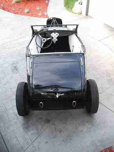 HAS 12 GALLON MOON SPUN ALUMINUM GAS TANK,WITH ELECTRIC FUEL PUMP,AND BATTERY KILL/DISCONNECT MOUNTED IN REAR UNDER CAR. ALSO INCLUDED IN SALE IS A HOOD TO MATCH WITH LEATHER MOUNTING STRAPS AND HARDWARE WITH RIVETS,AND A KWIK TOP WOOD AND METAL KIT.