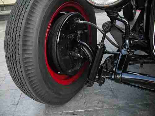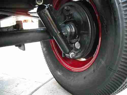 WHEELS POWDER COATED BURGUNDY FOR THAT EARLY HOT ROD LOOK.