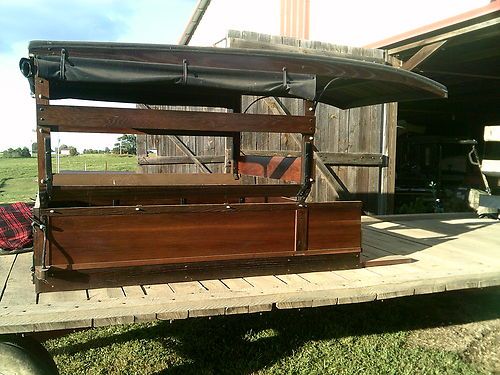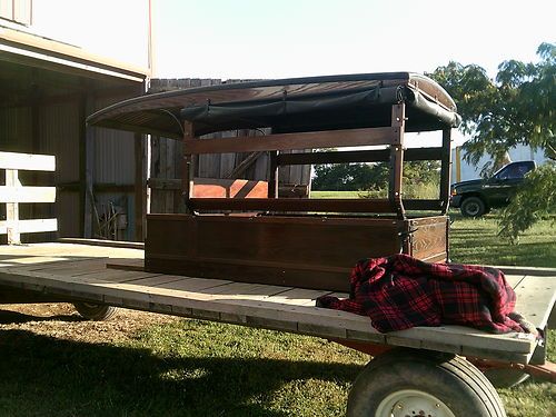 This is a new customer built oak Huckster body that has not been on a car. Body has vinyl top, side curtains, and covered seat.