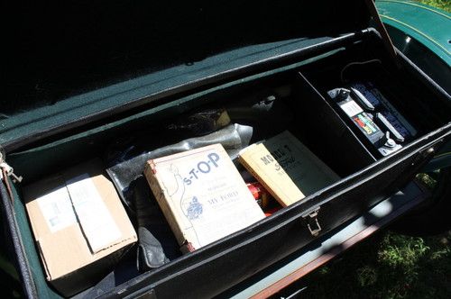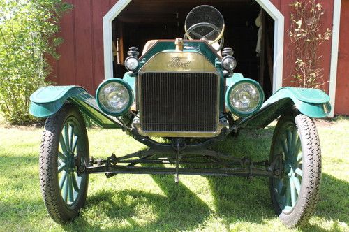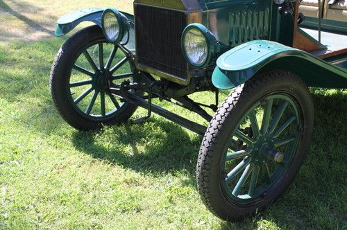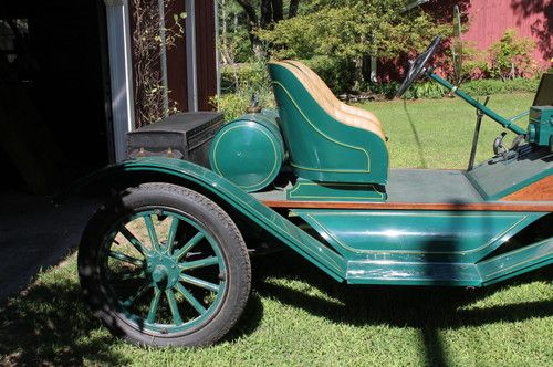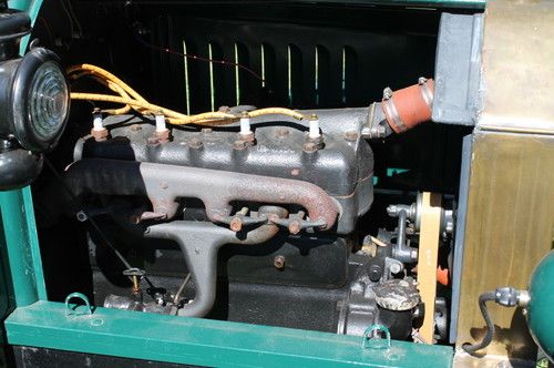 1915 Model T Speedster with a 1924 engine (will take a starter and a generator). The engine must be hand cranked unless you add the starter. Starts easily and runs on both magneto and/or battery. All lights work. 30" x 33 1/2" demountable tires on wood spokes. New sheet metal fenders. New gas tank. Bucket seats, vintage storage trunk, brass wind screen, electric horn and lights, brass radiator, aluminum hood, painted green with yellow pin stripe. This car is ready to drive. Was registered in PA as an antique. Has PA title. Only 500 miles since on the road. Includes photo album documenting every stage of this project. Estate sale.