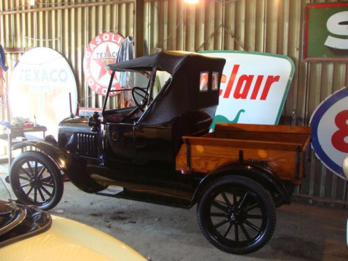 1922 FORD MODEL T ROADSTER PICKUP. THIS TRUCK CAME OUT OF A MUSEUM. IT HAS NOT RUN IN 5 YEARS. IT IS A RUST FREE , ALL STEEL TRUCK WITH NICE PAINT THAT HAS A FEW CHIPS. THE BLACK INTERIOR IS VERY NICE AND THE BLACK TOP IS ALSO VERY NICE. IT HAS A WOOD BED IN VERY NICE SHAPE . I HAVE NOT ATTEMPTED TO START THE VEHICLE. IT WAS CONVERTED TO A 6 VOLT SYSTEM. THE MOTOR IS FREE. IT WILL NEED A NEW BATTERY. THE RIGHT FRONT TIRE IS FLAT. I HAVE A NEW TUBE THAT I MIGHT INSTALL IF I CAN FIGURE OUT HOW TO CHANGE IT. IT WILL HOLD AIR LONG ENOUGH TO LOAD IT IN A TRAILER. THIS VEHICLE HAS NO ROT. THE LEFT FRONT FENDER HAS BEEN REPAIRED- SEE PHOTOS. I DONT THINK IT WOULD TAKE MUCH TO GET IT RUNNING, I JUST DONT HAVE THE TIME OR KNOW HOW ON THE MODEL T. CLEAR TITLE IN HAND. I HAVE PRICED THE TRUCK WELL BELOW WHAT IT WOULD TAKE TO PURCHASE A PROJECT AND RESTORE ONE. SOLD AS IS. VEHICLE AND TITLE RELEASED WHEN FUNDS CLEAR. I RESERVE THE RIGHT TO END THE AUCTION AT ANYTIME. NO TRADES. NO FINANCING. SHOWN BY APPOINTMENT IN PLANO,TX 75074 . CONTACT PETER KRELL- 469-569-0827 I SELL WORLDWIDE. HAPPY MOTORING PS- THESE IS NO ODOMETER, SO THE MILEAGE STATED IS NOT CORRECT.