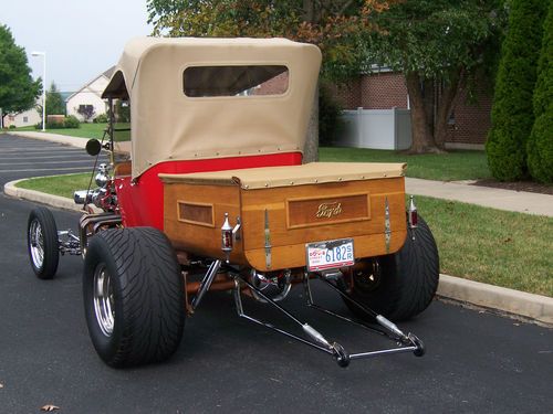 this is a replica of a 1923 ford model t roadster pickup , it has a 69 camaro 350 motor and trans , 350 turbo, .030 bored with a mild cam , it has a 10 bolt chevy rear, it was built in florida in 1986 , it has 23,000 miles since built , motor was rebuilt 2500 miles ago , the truck comes with a custom cover and a trailer hitch that isn't in pics . i can take this off ebay at any time because its for sale local