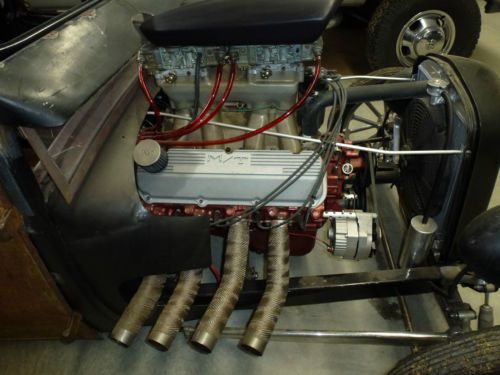 Up for auction is my 1927 Ford Model T Rat Rod. In all honesty i really hate to sell this car but i am just plain out of room and have another one of my cars coming home from paint soon so i am going to put a couple things up for sale this being one of them. This is not your typical pyle of junk thrown together rat rod, this is a very well thought out and quality built car that is actually registered and titled as what it is a 1927 Ford Model T. To Start of with the Chassis and roll cage were custom built by a well know fabrication shop in southern california that specializes in building baja race cars,trophy trucks, pre runners as well as full chassis drag cars The frame is made of 2' by 3" box tubing and the cage is 1 1/2" dom tubing.The body does have rust and dents but it is supposed to it's a rat rod,it could still stand to have some finish welding done on the chop or can be driven as is. The body is 100% original steel no fiberglass crap here! As far as running gear goes the engine is a 1969 429 Ford Cobra that is mild motor with hydraulic cam 10:1 compression a vintage offenhauser tunnel ram with new dual holley 500 cfm mechanical secondary carbs and a vintage Joe Hunt Magneto with mechanical tach, We recently sent the magneto out to Joe Hunt and had the internal all refurbished,custom built headers that have had rinehart motorcyle baffells installed.The Transmission is a C6 that has also been recently rebuilt and has kevlar clutch packs,the transmisson cooler lines were hand built out of cooper tubbing and are one solid line no unions in them to leak. the rear end is a 9" with 3.55 gears and a spool.It has alluminum 10 gallon fuel tank in the trunk as well as electric fuel pump with a aeromotive fuel pressure regulator with fuel pressure guage. The battery is also located in the trunk as well. The rear wheels are real vinatage american racing wheels with hurst DOT approved drag tires.Up front is a set of Radir spindle mount wheels wraped with motorcycle tires, The front wheels also have previsions for disk brakes if you wanted to install them down the road. As it sits the car only has rear brakes but they provide plenty of stopping power for the car. Front suspension has 4" drilled dropped axle, the rear suspenion is 4 linked with coil over shocks.New aluminum radiator with electric fan. You can drive this car anywhere it always runs cool.It has a very nice reproduction '32 Ford grill in it.The headlights are 1940 chevy with original lenses and updated halogen bulbs in them. The interior was done by a local shop here in town using a real cow hide for the seat. The throttle pedal is an old offenhauser pedal,quick release steering wheel.This is without a doubt the funnest car i have ever owned.It's funny but this car actually gets more attention then my friends lamborghini.Please realize that this in no luxury car by any means, it does not have a heater or a/c, or heated seats! It also does not have seat belts or turn signals but i have driven the car over to the coast and back about 160 miles each way. Serious bidders only please! if you do not have the means to pay do not bid.