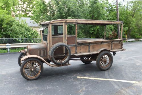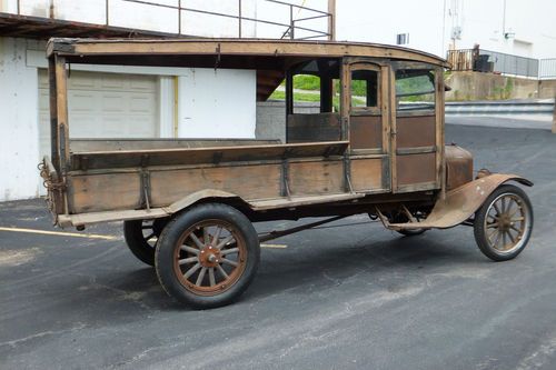 1923 Ford Model TT Six Post Huckster. This rare, original bodied Model TT truck was just removed from an estate where it had been carefully preserved for the last sixty years. When we purchased this truck, we rebuilt the carburetor, installed a new gas line, cleaned the gas tank, installed new spark plugs and wires, and the engine started right up for the first time in many decades. Although we have not driven the truck, the engine sounds great with no unusual noises or smoke.The chassis is complete and intact with solid original wood wheels which have new Coker tires and tubes on the rear and good, usable tires ont the front. The chassis components such as the steering, suspension, etc show typical signs of wear and it appears that this truck was well cared for making it a survivor in good original unrestored condition. The original wood body is complete with all of its proper hardware and, shows the expected signs of wear and aging, although is generally solid. Included in the sale is a copy of the 1949 title in previous owners name. This rare truck can be mechanically serviced and used as-is or would be a great display item. Model T trucks with their original wood bodies are extremely scarce and are highly sought after by vintage Ford and vintage truck collectors. Payment due five days after close of auction. Email with questions or call Dave (314) 941-3244