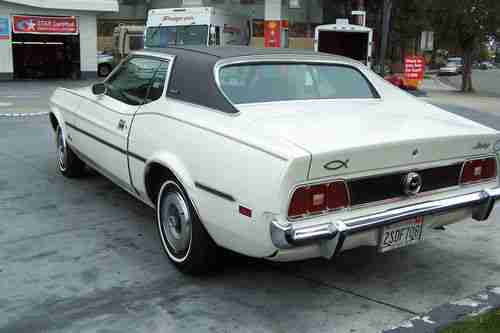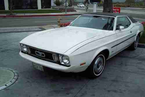 For sale is a very low mileage 1973 Ford Mustang Grande. I am listing this on behalf of the original owner This car has 45,318 original miles. The owner has all repair records, she also has the original sales receipt. This has the larger and most desirable 351 c engine, auto trans. other options include power steering, power brakes, a/c and the am/fm radio. the interior is black and is excellent condition. The exterior is white, it has been repainted , but many years ago. The rear bumper was slightly hit , it is a little bent in the middle. The rear lower valance is bent a little, This damage can be seen in the photos. There is NO rust on this car. The car has always been keep in the garage. This car runs and drives perfect. The mustang had a major service in 2011, all fluids were replaced, tires where replaced, lower control arms , strut rod arm bushing were replaced. In 2012 the shifter bushings and turn signal switch were replaced. If your looking for a classic Mustang , this is one of the cleanest, nicest unrestored original cars If you have any question please call me, I am John at (310) 823-2330.
