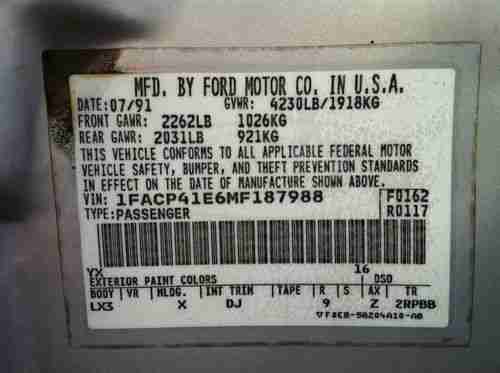 Up for sale is my 1991 Ford Mustang LX 5.0. The car is unmolested and is nearly 100% original. With only 63,000 miles it runs and drives 100%. It has had a recent tune up. The only performance modifications are the cat back flowmaster exhaust system which sounds excellent and the short throw shifter which gives the gearbox a great feel. The cars has 4 brand new Michelin Exalto tires which look great on the original 5 star pony wheels. The car was resprayed several years ago and while not 100% perfect it is in presentable condition and shines great. I will attempt to give an accurate as possible condition of this car. The only problems with the appreance of the car is the slight bubbling of the paint in the right rear fender which i have included a picture of. The rubber moldings around the windows show some wear as well. Also the A/C does not blow cold due to a leak in hose that goes into the ac compressor. I have tested the compressor and it works just needs a new hose which is an easy fix. It is getting harder and harder to find a clean mustang that has not been modded and I hope my car goes to someone that can really appreciate this vehicle and care for it like I have. Good luck and happy bidding!