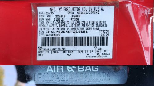 VIN (Vehicle Identification Number): 1FALP42D4SF210686