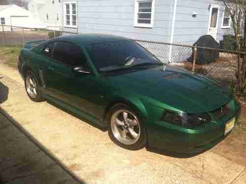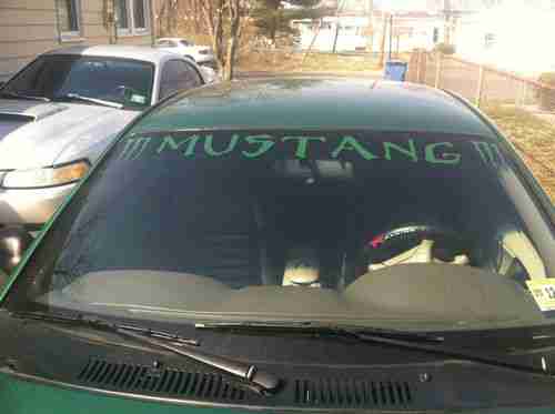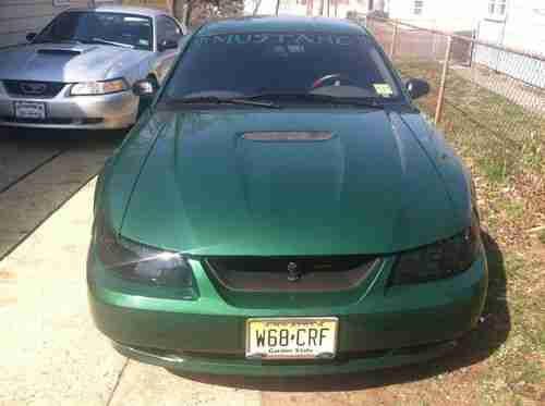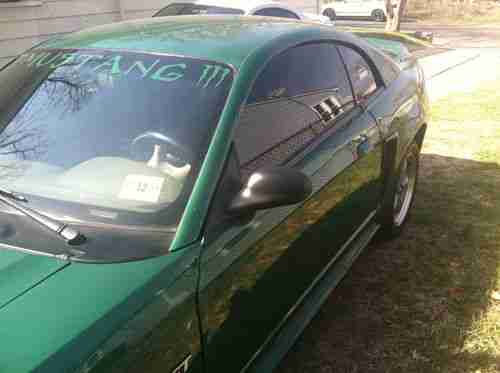 2000 MUSTANG GT AUTO, CAR IS A ABSOLUTE BEAST RUNS AND SHIFTS LIKE A CAR SHOULD, THE CAR HAS BE REDONE BY KRUSE CUSTOMS,BLACK LEATHER POWER SEATS AND TAN TRIM, WITH A DOUBLE DIN STEREO BY JENSEN DVD, CD NAVI ETC,MACH 460 UPGRADED PREMIUM SOUND SYSTEM, UNDERNEATH THE CAR IS BRAND NEW AMERICAN THUNDER CATBACK SYSTEM, YES BRAND NEW, NEW SLOTTED ROTORS ALSO BRAND NEW CALIPERS AND OF COURSE PADS, EIDELBRACH LOWERING 1.5 SPRINGS, KONI STRUTS AND CAMBERS AS WELL,BRAND NEW UPGRADED UPPER INTAKE AND PORTED PLENUM, COLD AIR INTAKE, EXTERIOR WAS JUST PAINTED GREEN THE SAME AS ORIGINAL COLOR, TINTED HEAD LIGHTS, ALSO COBRA DELETE KIT FOR FRONT, THE CAR IS ALSO GOT BRAND NEW 245/45/17 SUMITOMO TIRES WITH BULLIT SILVER RIMS AND BLACK COBRA CAPS, U CAN TAKE THIS CAR ANYWHERE, LIMO TINT ALL THE WAY AROUND EXCEPT WINDSHIELD, THERE IS ONLY ONE LITTLE WAVE BY THE REAR QUARTER WHICH IF U ARENT STARING AT IT YOU COULDNT TELL AND ONE LITTL CREASE BY THE FRONT DOOR LIKE I SAID IF YOU WERENT STARING AT IT YOU COULDNT TELL, CAR RUNS AND LOOKS BEAUTIFUL, I JUST PURCHASED A 5 SPEED AND THATS THE ONLY REASON WHY IM SELLING THIS CAR, CAR DRIVES STRAIGHT WITH NO VIBRATIONS AT ALL I WAS DOING 140 PLUS IN THIS CAR AND IT WAS LIKE I WAS DRIVING A CADDILLAC. BID WITH CONFIDENCE , LOCAL PICK UP OR YOU ARE RESPONSIBLE FOR SHIPPING TO YOUR DESTINATION, YOU WILL HAVE 7 DAYS TO PAY IN FULL AND A 1000 unrefundable DEPOSIT WILL HAVE TO BE PAID TO PAYPAL RIGHT AFTER WINNING BID!