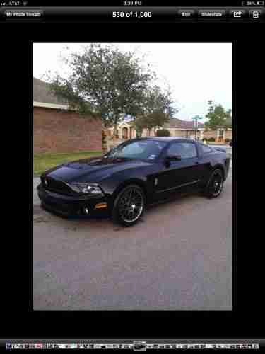 2012 GT500 with all options except glass roof. Has navigation recaro's svt performance package, the car is bone stock with the exception of eibach sportline springs. Never been in rain or any kind of bad weather. Garage kept and under dust top car cover. This car has never been smoked in and has never had any spills in it. Extremely clean car. 2300 miles comes with two car covers.