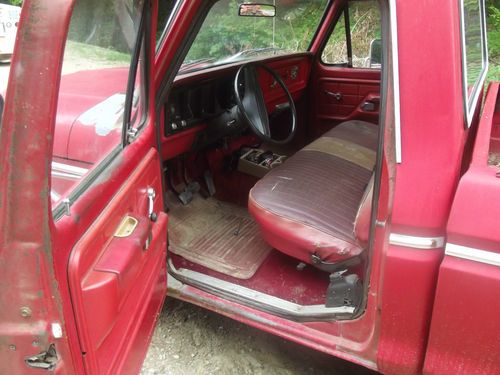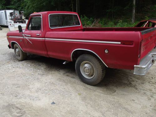 Up for your consideration is a pretty decent ford pickup truck. Body is 90-95%, newly rebuilt 460 engine 4 barrel, 4 speed bulldog, interior is decent, power brakes and steering. The bad; needs starter, needs a little brake work and tires. It is for sale locally, reserve the right to end auction early, I would trade on Wheel Horse Lawn and Garden tractor stuff. Or let me know what you have, may trade on another vehicle. My name is Todd (606) 210-1736. What you see is what you get.