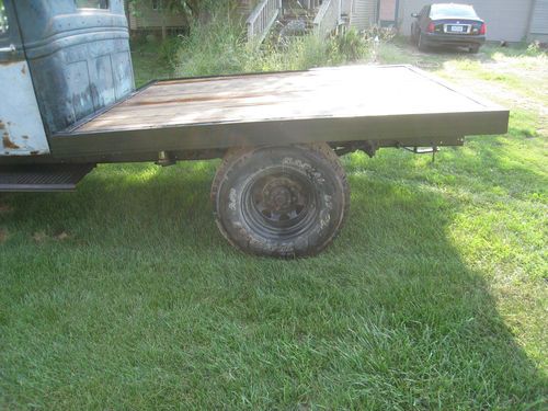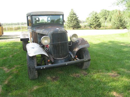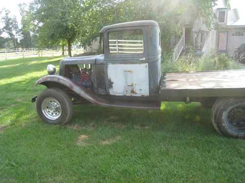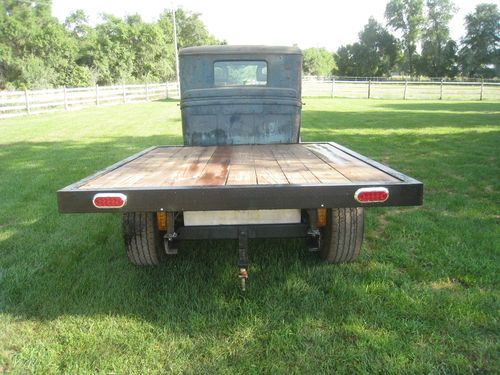 This is a 1934 ford truck mounted on a 1951 ford 3/4 ton chassis, has a ford flathead engine with dual carbs and a 4 speed trans. New glass,and flatbed, The tires are good has lights and turn signals. You can have the old running gear with the auction if you want it.