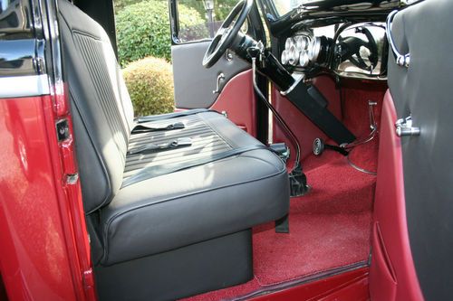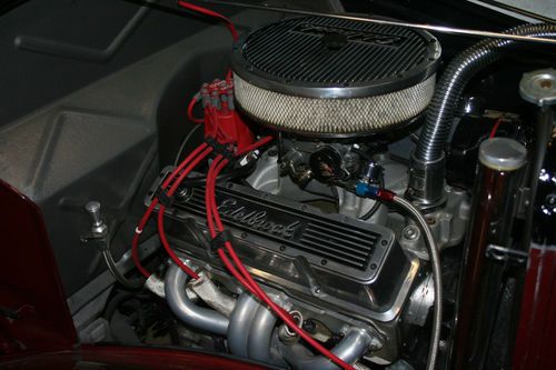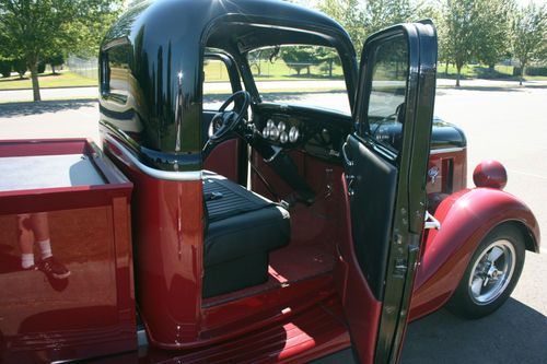 1935 Ford Street Rod Pickup. VIN #18212909. Original steel cab & doors, front fenders, running boards, grill shell. Custom fiberglass hood (side hinging), hoodsides, box/bed, aftermarket fiberglass rear fenders. Less than 2200 miles on truck since assembly completed in 2010. Rebuilt 355 Chevy, block was bored and decked, align bored and the rotating assembly balanced. Hypereutectic pistons, 10:1 compression. Edelbrock aluminum heads, intake and carb. Comp Cam with roller rockers and stud girdles. MSD Ignition and wires. Ceramic coated block hugger headers. Dual exhaust with Cherrybomb mufflers( nice mellow lope at idle and tuned sound at speed). Rebuilt Turbo 350 transmission with Lokar shifter, B&M shift kit and 2500 rpm stall convertor. GM 10-bolt rearend, 3:42 ratio with drum brakes, trailing arm rear suspension with adjustable coil springs, chrome rear shocks and panard bar. American racing torque thrust wheels, 14 x 6 fronts (185/70 tires) and 15 x 8 rears (275/60 tires) with knock-off style center caps. Modified Ford frame (partially boxed, additional crossmenber), Butchs Rod Shop 4" dropped 4-bar front tube axle with manual disc brakes. Vega style manual cross steering, Flaming River steering box. Chrome parrallel bars, shocks and multileaf spring. Dupont Chromabase Maroon & Black basecoat/clearcoat with metallic silver beltline stripe. Black vinyl ( carpeted bottom side) solid hinging bed cover. Oak wood lined and carpeted bed/box. Tilt steering column. Autometer gauges. Painless wiring harness. Early 60's Corvette tail lights. Completed truck, runs and drives excellent on pump gas, very dependable. Gets lots of attention whenever it's driven. Really must see and drive to get the full picture of what this truck has to offer. Nice driver around town but will get up and move on the highway if desired. Complete build book with photos and build receipts will be included. Multible trophy winner at local car shows. Paypal deposit of $500.00 required within 2 days of auction end, full payment in the form of certified bank cashiers check or money order required within 7 days from auctions end. Shipping is up to winning bidder, will do what I can to assist at this end. Would recommend enclosed shipping, can store for one month after sale is complete so a convenient shipper can be found. Email if you have any quesstions, selling as is, where is with no warranty, thanks for looking and good luck bidding.