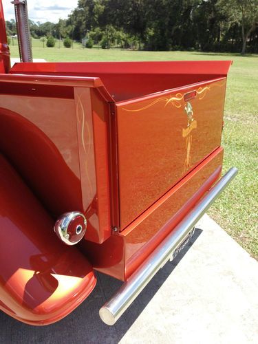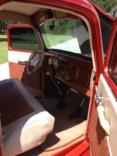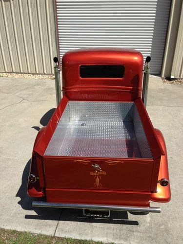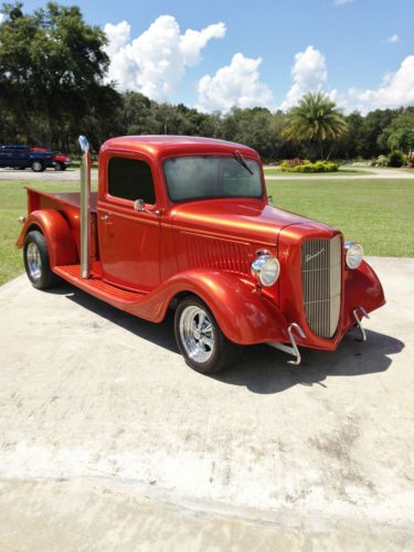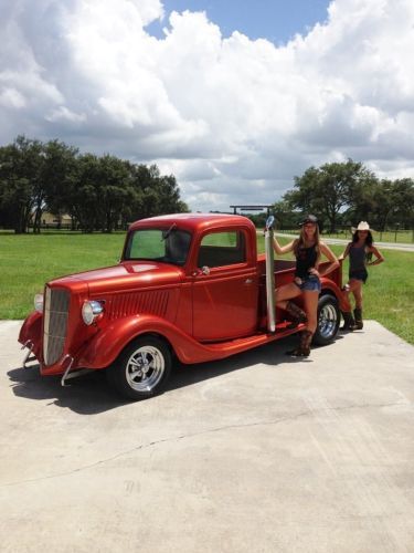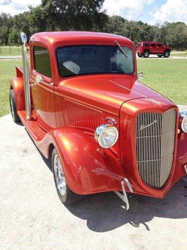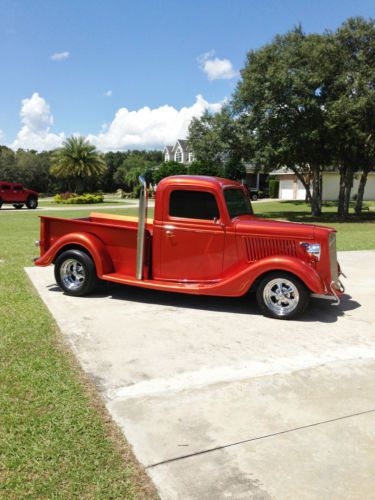 | 1936 Ford pick up street rod high output 302 V8 automatic overdrive transmission, power steering, power disc brakes, power windows, air conditioning blows hard ice cold, beautiful atomic orange paint, custom pin-striping, late model chassis and suspension very clean and detailed undercarriage no rust makes truck drive like new, high-end quality build.