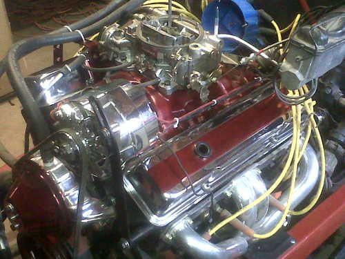 ENGINE HAS CERAMIC COATED HEADERS, THERMO COATED INTAKE, EDELBROCK CARB, POLISHED BILLET PULLYS, HEI IGNITION AND OTHER PARTS, MOTOR IS PRETTY STOCK, RUNS SMOOTH.,