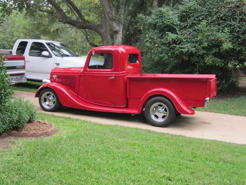 1936 Ford Truck. Frame is a 93 ChevyS-10. Engine is a 302 with a C-4 transmission. Transmission and rear end have been rebuilt. Has Vintage Air and custom gauges from Classic gauges that fit into the original dash. Speedometer is original and works. Grill, hood and cab are original steel and fenders, running boards and tailgate are fiberglass. Bed was fabricated at a sheetmetal shop. I was told the engine was rebuilt when I bought it 5 years ago but I had my doubts. I think it would be better with another engine although I did just drive it to Louisiana from Houston and back. Needs to be waterproofed as it leaks in the rain.