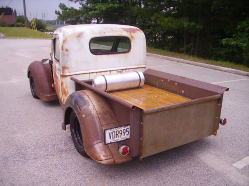 Here is the best driving RatRod that you will ever drive. It was very well built over this past winter. It has a 46 Chevy Cab with 1937 Ford Fenders,( the rear fenders have been widen ) Hood and front grill. It is registered as a 1937 Ford Truck. This truck is sitting on a early ninty's Toyota Truck Frame and rearend with hwy gears. It is powered by a built 350 Chevy engine and has a 700R4 overdrive transmission. It has a nice sounding cam in the engine with the exhaust coming out the side. It sounds really good. It has bucket seats with a tilt steering column. The gauges are aftermarket gauges and all work except gas gauge. All glass is good and has door glass that rolls up and down. The tires and wheels are new with GoodYear Radial Tires. It drives tight and not all over the road like most. It don't have all the rattles that most RatRods have. It was drove 2 hours home and ran cool. The hood was done so it could be taken off if you wanted or needed to. It has a beautiful wood bed with the gas tank sitting next to the cab in the bed. This is a cool little truck that you can drive about anywhere. Not your average thrown together Ratrod. It is not all rusted out. DON'T MISS IT!!