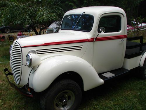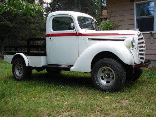 Up for bid is this very nice 1938 Ford 4 wheel drive pickup truck. The truck has a 1939 grill. Has a 289 motor with aluminium intake and 4 barrel Carter AFB competition series carb. Also aluminium valve covers. Motor was rebuilt has approximately 12,000 miles on it.Run's great!! Has great sounding duel exhaust. T5 five speed. It has 1972 Ford Bronco drivetrane, and Warn locking hubs. Body is all steel, the custom built bed has boxed tubing structure , diamond plate steel deck with bed liner coating. There is a receiver hitch. The gauges are DOLPHIN. If you have question's email your phone number and I will get back to you. This truck can be used every day. Thank's for viewing