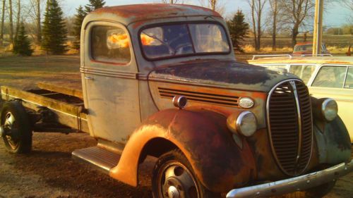 1938 ford 1.5 ton truck farm fresh truck, the motor is a non running newer inline 6 cylinder (carbureted) motor, truck has all 4 original ford script centers for the wheels, even has the original hood ornament and all the emblems, the horse collar grille is in perfect condition! even has the original smiley face headlights! the fenders are rock solid along with the cab corners, bottom of doors do have some rust but very fixable! has the original gauges in place along with the original seat. the header panel inside is solid. this would make a cool car hauler or rat rod/resto project. very desirable year!!! I do not have the title, it has been lost through the years. this 38 is on here to sell with a reasonable reserve, please don't ask the reserve, I wont say. and please be serious when bidding and follow through with payment if you are the high bidder and the reserve has been meet. please have a feedback score of at least 5 when bidding or your bid may be cancelled. I reserve the right to end the auction at any time. if you have any ?'s ask and I will be more than happy to help! thanks for looking and good luck! again I don't have a title!