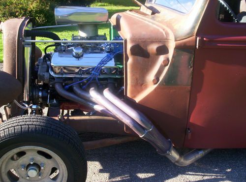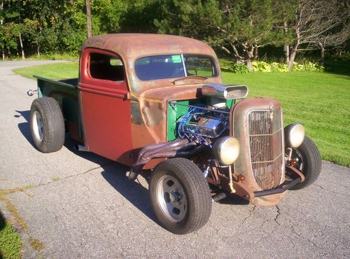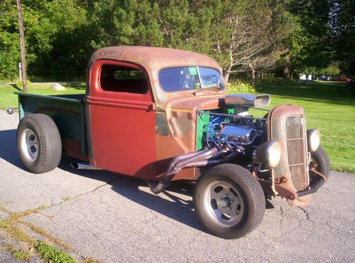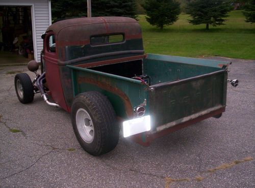 for sale 1940 ford hot rod truck. the cab is chopped 4 inches and channeled 6 inches. the frame is a 1946 ford car frame shortened 10 inches it is also boxed and has a redesigned transmission cross member. the engine is a 468 Chevy big block. the engine is a fresh rebuild and has many performance parts including ,lunati cam, trw pistons, summit proflo water pump, professional products dual plane air gap intake, holley 670 street avenger carb. moroso 8 qt. oil pan , powermaster mini starter and alt. the trans is built turbo 350 with a Fairbanks shift kit and Hughes 220 stall torque converter. the shifter is b&m. the rear end is a 12 bolt posi with 3:73 gears. rear suspension consist of old school truck arms, coils with jacking bolts, tube shocks and panhard bar. the front suspension consist of a 1946 Ford car I beam with super bell spindles, super slide reversed eye spring. tube shocks panhard and speedway 11 inch disc. brakes. steering is cross steer with a Vega box borgson u-joint and vintage early ford column with a 1965 Chevy Impala steering wheel. the Gages are Stuart Warner and Sun super tach. the grill is a 1935 Ford truck with speedway aluminum radiator and a low profile electric fan. The engine runs cool even on hot summer days. the gas tank is a 16 gallon summit fuel cell. the fuel pump is a Holley red street electric pump. Wheels are vintage aluminum slots by Anson 14x5.5 in front and 15x9 in the rear. this truck is very fast and handles very well. It does not have a title and will be sold with a notarized bill of sale. I am in the state of Maine which does not issue titles for vehicles this old. It is registered and inspected. there is no warranty written or expressed. Sold as is where is. payment will be by certified bank check or cash in person. The buyer is responsible for shipping. Please feel free to ask any question you have.