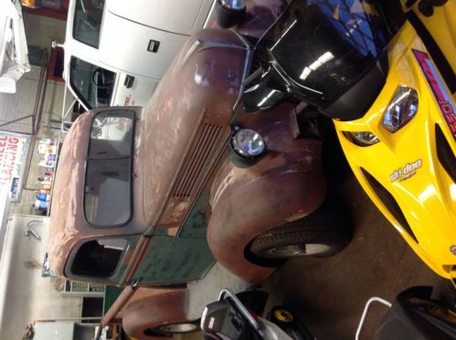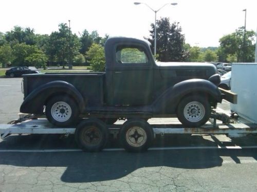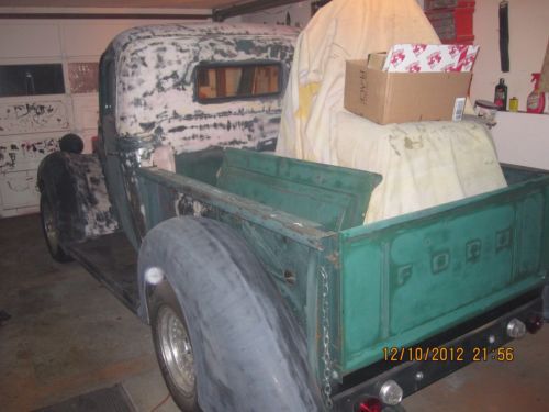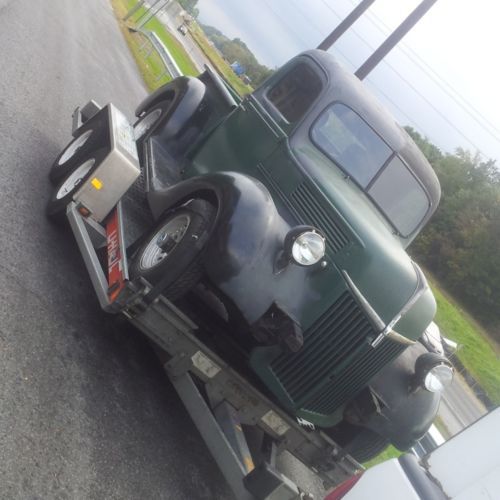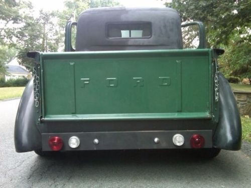 This 40 Ford is a solid great running truck with a Chevy V-8 engine and drivetrain, the automatic transmission shifts great but does have a transmission leak not sure where but when it sits I see an area with fluid on the floor. I just add transmission fluid and it works great. I have not had time to locate the leak and fix it yet. The bodywork has had quite a bit of work done to it buy a body shop but still needs to be finished and painted. I will assist to have it shipped once the funds are cleared if you are bidding from far away. I will also answer any questions I can if you email or call me at 413-446-4888 (Bob) or text. I was going to finish the truck to a show quality hot rod, but it could also be a fun rat rod or Street rod once finished. If you are local the truck is at my shop and can be seen anytime. Bid with confidence this is a solid hot rod truck project. Must sell need to finish my other projects and unfortunately i do not have to to complete this truck. I have a clean title which is titled for a 1940 ford truck. Thanks for looking and happy bidding!!! NOTE : The last couple of pictures of the truck when it was green with black fenders are when I first bought the truck BEFORE we started all the bodywork the pictures of the truck that shows the body filler and primer are the way it sits now. It will need body work finished and will need to be painted.