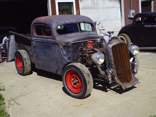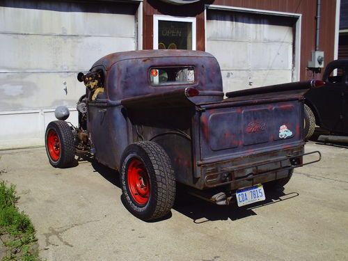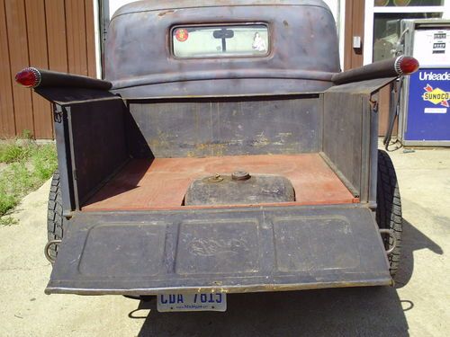 1940 ford pickup, built in spring of 2010. It has been trouble free since the build. It is currently in Rebel Rodz magazine, in the homegrown rods section. 283 2 barrel very peppy engine, powerglide trans, 9 inch ford rear. It gets up to 24 mpg. Truck is ready to use. Chevy headlights, with halogen bulbs. 4 wheel drum brakes, z`ed frame, working speedometer, fuel, oil, temp gauges. One wire alternator. Hood removes with no tools in seconds, so does box cover. The cover is also lockable. The box has a lot of room, great for swap meets. The heater is hooked up, it needs a 6 volt reducer. Heavy duty custom Howe aluminum radiator. `59 caddy taillights, custom built box. Front turn signals are in bumper gaurds. Solid steel rear bumper. Good tires with tubes so you can add portawalls if you wish. Clear 1940 ford pickup title, call or email with questions, 989-772-0822. $300.00 non refundable deposit, buyer to pickup. Dog not included.
