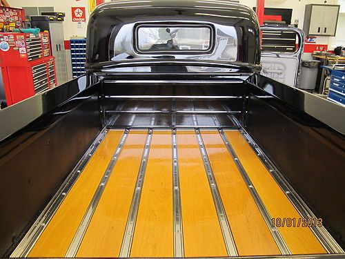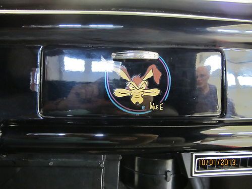 It has also been lowered to give it that right look stance. Paint is Base Coat Clear Coat Black with a little pin stripping. It has a Oak bed in good condition. Grey Leather interior, Tilt Steering Column with 4-way flashers, GT Grant Steering Wheel, New gauges and Tach. Car is themed in Wilee Coyote which is painted on the glove compartment, etched on rear window and painted on rear tail gate along with floor mats.