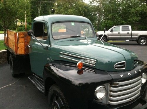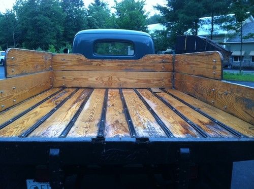 Fun truck. Older paint job, still has shine, and looks great going down the road. Ideal truck for Landscape, Garden Center, or other contractor. Letter this truck up and it will be a great advertisement for you. Also very easy to drive as it has been converted to a GM V8 with 3spd auto transmission. Runs and drives good, like any antique it could use tinkering, brakes are fair, and steering wanders a bit. Has radio added, and works. Glass all good. Has real Ford Script steel framed flatbed. Don't miss out, NO RESERVE. Any questions, please call before bidding. 603-520-0218
