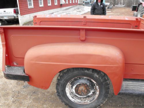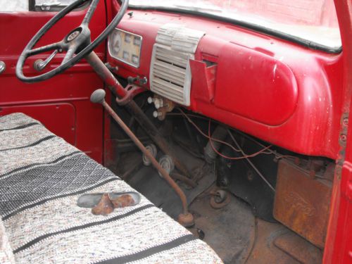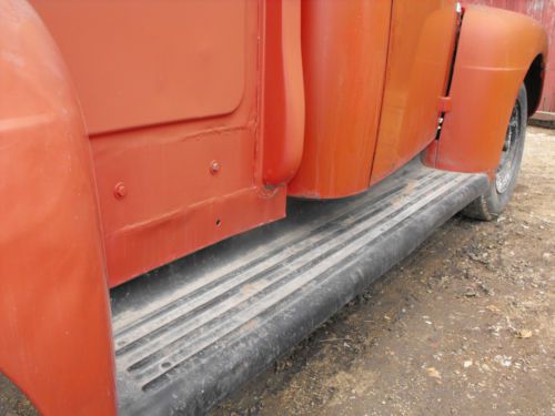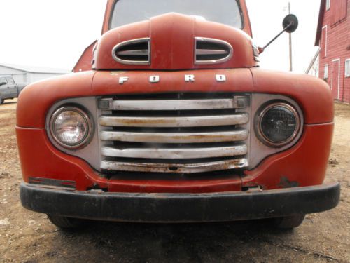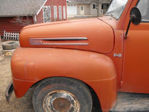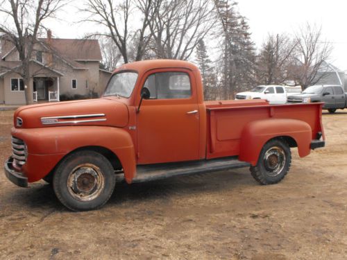 1949 Ford F-3, old Farm Truck. No title, bill of sale only. The Flathead V8 engine is complete and turns over freely by hand, but has not been ran for 16 years. The body is very sound, doors latch and open like new, windows crank up and down. It is missing the Ford emblem on the right hand side of hood, the horn button, original gas cap and tailgate. There is a rust issue on the inside of the cab where the rearview mirror was mounted, appears water came in thru the window gasket with dirt / debris there it held moisture and rusted out that metal. This truck rolls, the brakes don't work and the 17" tires hold air. Truck is being sold as is. "The Old Boy" has been on our farm since the early 80's and told it's been in the neighborhood since new. According to the Vin tag it was made in St. Paul Mn. This truck was a lot of fun to drive in the day and gave us a lot of memories and laughs