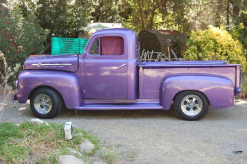 Clean & mean, this 1951 Ford F1 has a rebuilt Chevy small block (350), New Edlebrock Carb, New: Brakes, Wheel & Master Cly, Tires, Front Suspension including Leaf Springs, Battery & Paint.