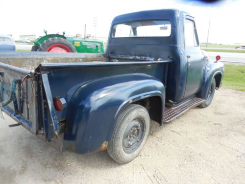 1954 Ford F100 pickup truck -Old blue paint with a clear coat on top to keep the patina look. -Runs and drives great, about 300 mile put on last month -Has rust in running boards, fenders, floor(see pictures) -1/2 ton, short box -Clear title -Wipers work, headlights work, tail light works, speedo works, blinkers do not -Motor runs nice, does not smoke If you have any questions or for a shipping price call me at 218-234-1866 I reserve the right to end the auction early for a local sale. |