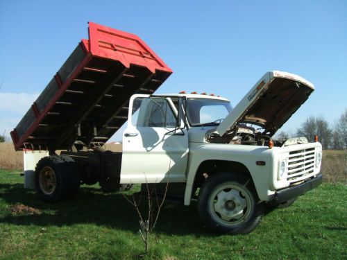 NUMBER ONE CYLINDER HAS A OIL PROBLEM THERE IS EXSSESIVE CARBON ON THE SPARK PLUG FROM THE BURNING OIL. ALL THE OTHER CYLINDER SPARK PLUGS LOOK GOOD. THE HEATER CORE HAS A LEAK. ALL BREAK PADS, BREAK CYLINDERS, MASTER CYLINDER, HAVE BEEN REPLACED A FEW YEARS AGO. BOGHT THE TRUCK FROM MY GRANDFATHER ABOUT 8 YEARS AGO HAVE DONE SOME WORK ON IT AND USED IT FOR MY OWN PERSONAL USE. THIS TRUCK RUNS AND HAVE USED IT LAST YEAR AND RAN IT JUST RECENTLEY. THIS ALSO INCLUDES 2 FRONT TIRES, 3 REAR TIRES. THERE IS FIBERGLASS AND BONDO IN THE BODY. I PAITED THE BODY WHITE AND SOME OF THE RUST IS COMMING THROUGH. HAS A HEAVY DUTY HITCH. THE DUMP BED WORKS WELL. TOOK LOTS OF PICTURES IF YOU HAVE ANY QUESTIONS PLEASE ASK. THE ODOMETER SAYS 62504 BUT I BELEVE IT MAY HAVE 162504. 4 SPEED WITH HI AND LOW REAR END.PICKUP ONLY .LOCATED IN ATTICA, IN.