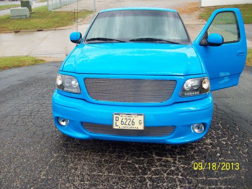 Just got this one in. Here we have a 2000 Ford Lightning custom truck, only 95,000 miles! Painted ford Grabber Blue......and done right. Cab was removed and all jams were painted to make this job look like a factory one. Spray in bed liner also sets this truck off. Custom headlights, tail lights, 3rd brake light. LED's and Halo's, custom grille's, K&N cold air kit is the only engine modification made. If you know these trucks, then you know with minimal money in some bolt on parts you could make this truck scream.......pull up to the car show and you won't see another one like it. New tires, vehicle has been through our service department for inspection and is ready to go. A/C is ice cold, everything works as it should. Truck also has a tow hitch. Looks amazing in person. Call jon with any questions (618)363-6978. $500 deposit due at auction end, vehicle is for sale locally, reserve the right to end auction early, buyer to arrange shipping(we will help out any way we can).....BETTER ACT FAST