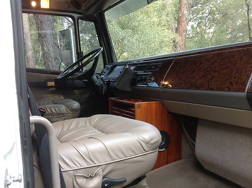 I had this truck custom built be Express Trucks in Hemit , California. It has custom leather captains chairs, simulated burl wood dash, center consul,carpet floors, custom headliner, two folding seats in the back that stay out of the way until needed.the running boards were made to hide the fuel tanks and blend well with the Ford F350 Dually Bed. This truck is the same width as a light truck,F350 Dually, the same length as a F250 ext. cab. The difference is that it is taller and the front,cab, is wider than a light truck. This truck has a smaller turning radius than any of the light trucks of the same length. You can actually do a u-turn at an intersection. This truck has never had a goose neck or a fifth wheel installed. This truck can pull approx. 28,000 lbs. if you want a real truck that none of your friends have,take a look at this rig. It is impressive to drive,easy to drive and will park any place you can park a light truck Dually. This truck has a "million mile motor" the transmission is a Allision six speed, can be shifted one gear at a time or just automatically. It has a switch to lock the rear end if needed in sand or snow. This is an awesome truck. Any questions will be answered. There is nothing wrong with this rig. It is like new. No disappoints here.
