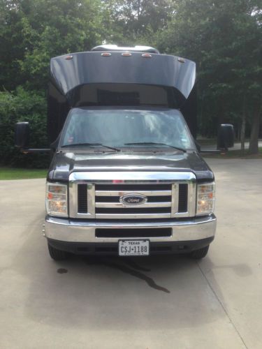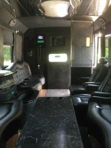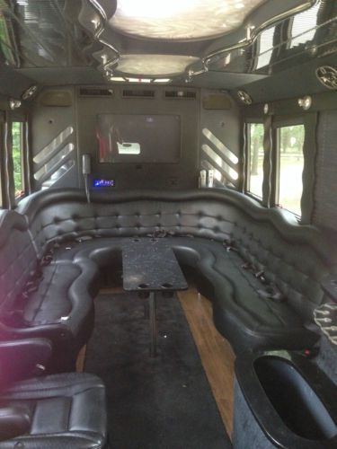 2008 FORD E-450 - 20 PASSENGER LIMO PARTY BUS Gasoline, Black exterior and Black Leather ostrich interior Fiber optic stargazer ceiling Strobe light LED lighting accents 2 Flat screen Samsung televisions Wired for inmotion satellite tv Stereo, CD, DVD, Bluetooth Stereo front and rear Pioneer and Rockford Fosgate Speakers Privacy Divider Intercom Ice chests Champagne well Touch Controls Window Blinds Luggage compartment Brand new tires 94,000 MILES, There is no damage evident on this vehicle.The engine on this vehicle is running properly.The mileage represented on this vehicle is accurate.This vehicle has a smooth shifting transmission.All power equipment is functioning properly.This vehicle has no known defects.Overall, this vehicle's exterior is clean. |