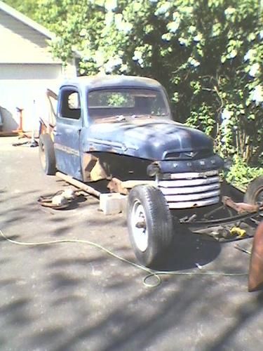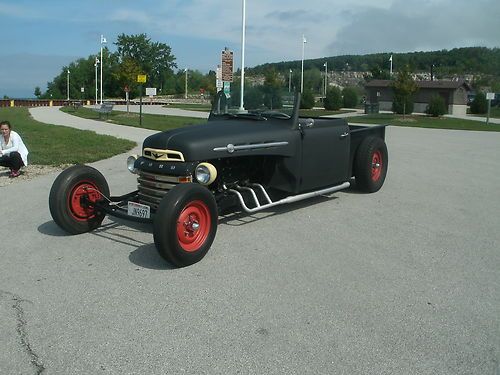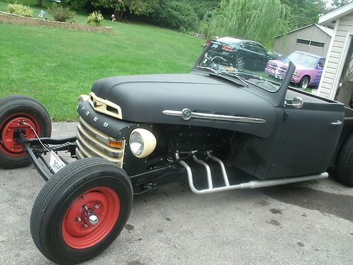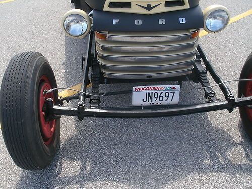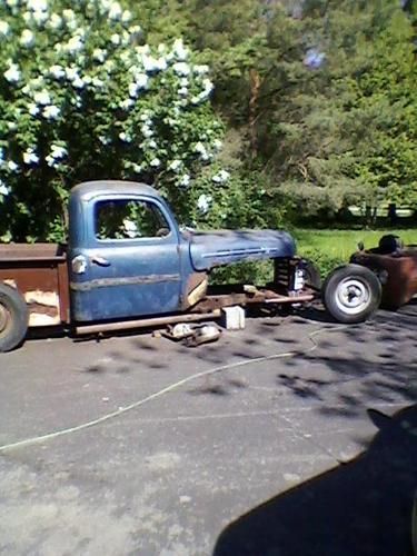 up for sale 1948 ford f-2roadster pickup,, choped top, sectioned 4 inches ,,Z ed 8 inches,,streched 40 inches shortened box model A front axle..oliptical front springs,. fresh build... fresh flathead rebuilt with new pistons rings valves tappits and the works has new style lifters and is set up to burn unledded gas. have 3000,00 in motor alone new cap,rotor,plugs, wires,points ,condencer new vacuum advance has rebuilt starter and rebuild kit in carb.. new altenator, new water pumps, new belts.. radiator has been steemed and baked .have driven this truck for about 300 miles it runs and drives great and runs at 160 to 180 degreese all day .it floats along very smooth and really is fun to drive,.truck has new brakes new wheel cyls,new master,, new lines,, rebuilt 3 speed transmission with lots of new parts including sinkerals new king pins, new shocks in rear. new floor mat .wood in bed is red oak,16 inch tires in back 15 in front. if you like it long this one has a 149 inch wheel base measuring 16 feet long front to back. i have had it to a couple of car shows ,it really gets the looks.